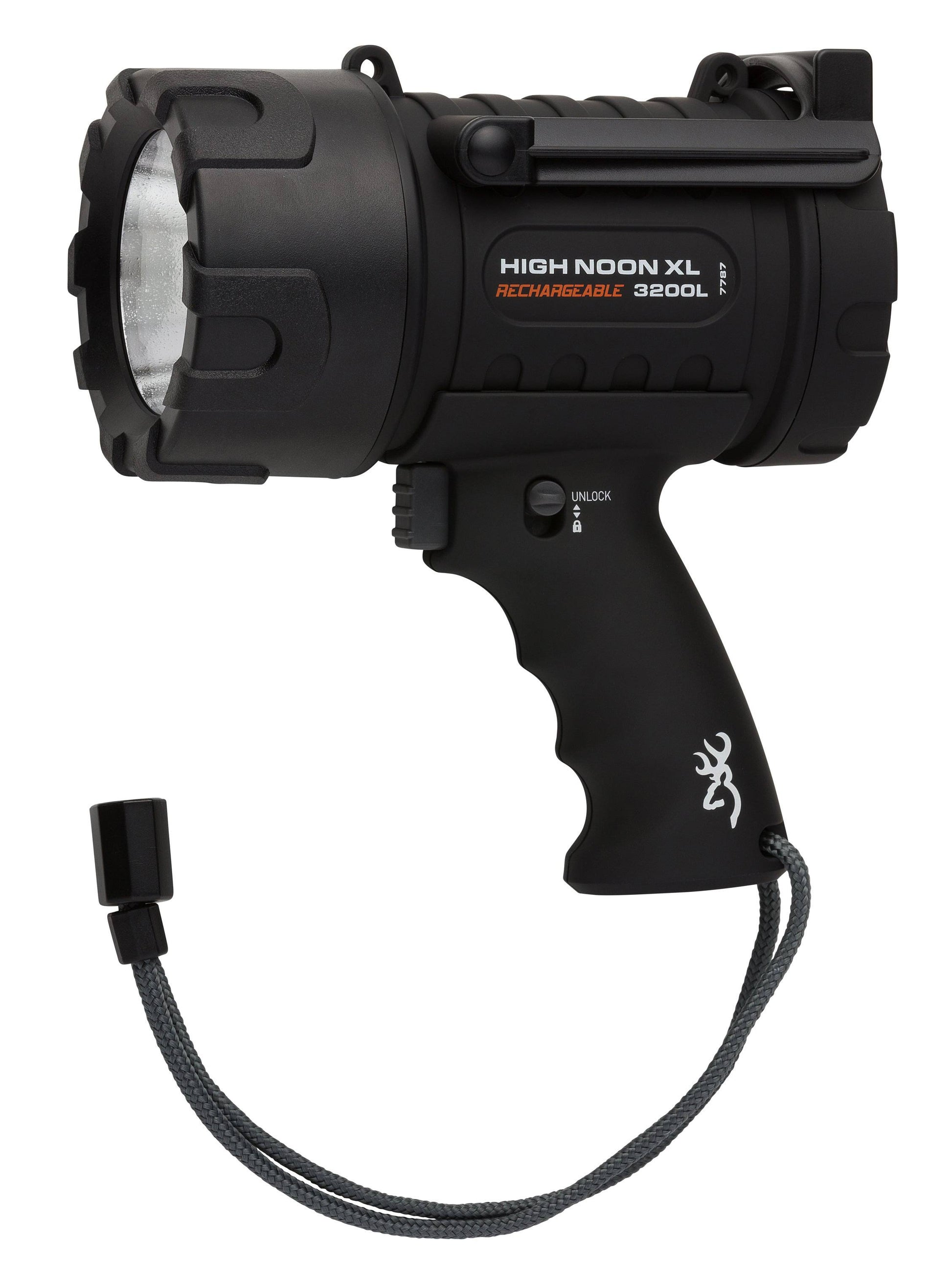 Our brightest model yet. This ultra-lightweight spotlight has a powerful beam that can shine up to 3200 lumens for 520 yards making it the brightest spotlight in our line. Perfect for waterfowl hunting, it is waterproof, submersible and it even floats if you should happen to drop it overboard. New USB-C charging technology allows the battery to charge much faster than traditional USB. You can use the bi-directional charging cable to utilize the Power Bank feature to keep your phone charged up in the field.