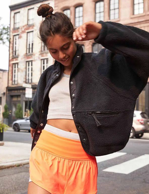 Planning to be outside in the cold? Layer up in the FP Movement Hit the Slopes Sherpa Jacket to stay cozy and warm. This fuzzy fleece jacket has an easy fit and slouchy silhouette to give you a laid-back look. A snap-button front and zippered pockets give it a throwback vibe to pair with your outfit. Perfect for layering on a fall hike or at your next tailgate, the FP Movement Hit the Slopes Sherpa Jacket will keep you warm when temperatures drop.