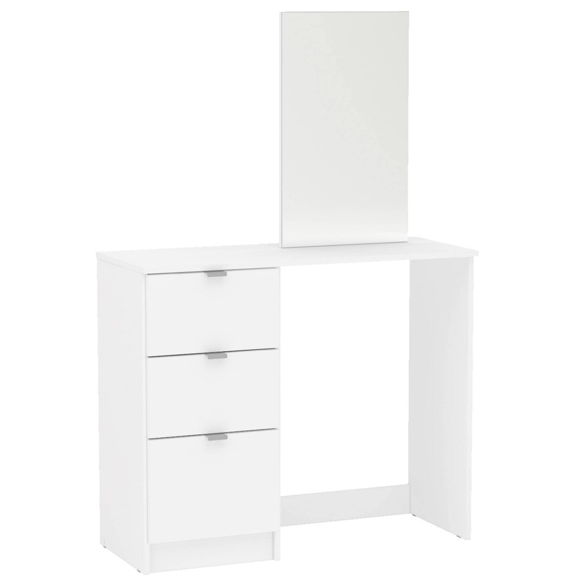 The Hollywood Vanity table is a perfect addition to any room. With 3 drawers and a tall mirror, this table has plenty of storage for all your make-up plus other items. The last drawer is deeper than the other drawers, perfect for larger, taller items. With a modern handle and ample work space, this vanity will go great in any room.