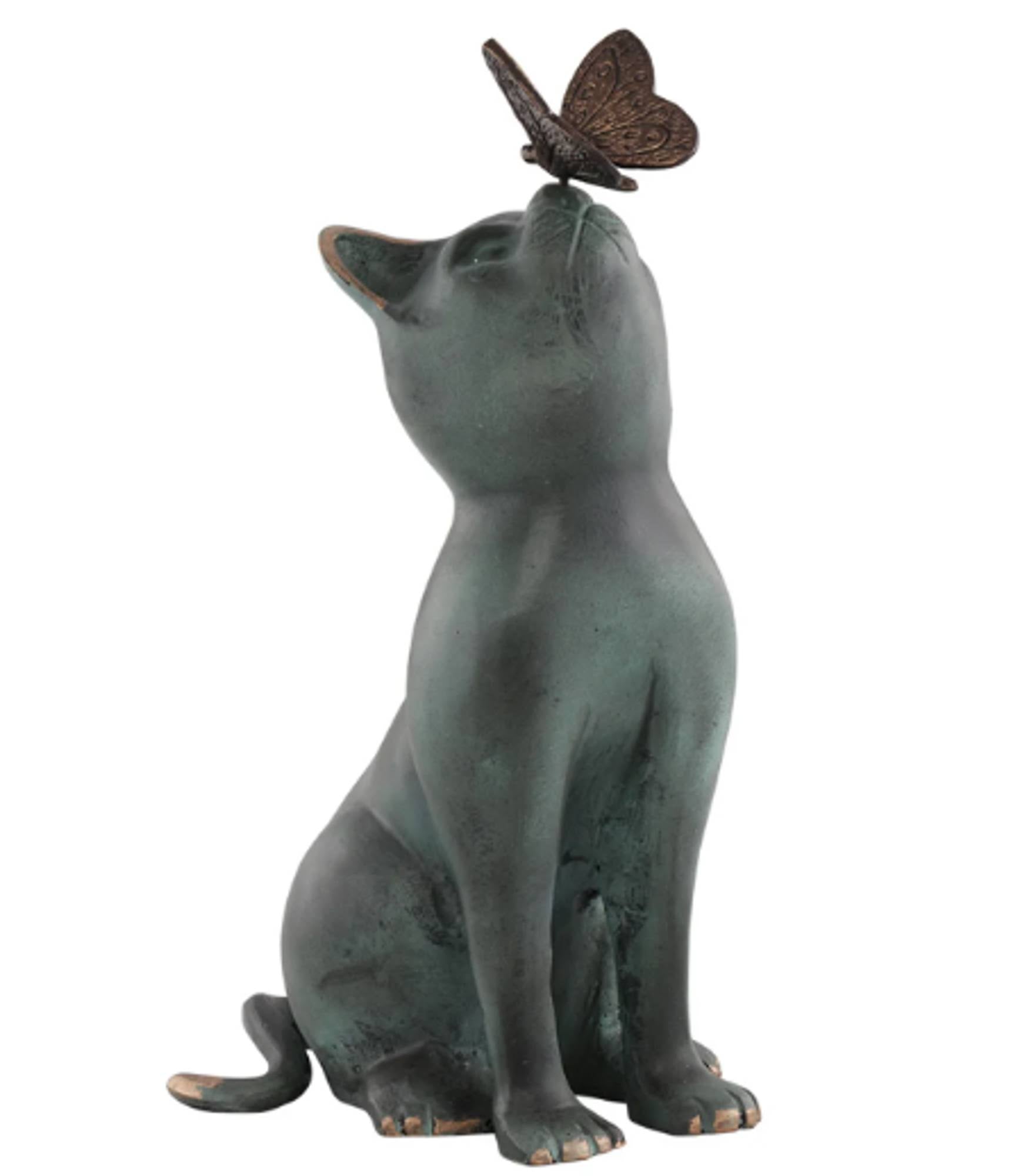 Measures 13 Inches High, 8.5 Inches Wide, 6 Inches Deep. Made of Aluminum. Beautiful Patina. Makes a Great Gift. Transform your yard or flowerbed into a haven of curiosity and charm with the endearing Curious Catgarden statue. Meticulously crafted from durable aluminum, this delightful sculpture showcases a captivating antiqued bronze and verdigris patina, infusing it with a timeless and artistic allure. Standing at a height of 13 inches, with a width of 8.5 inches and a depth of 6 inches, this statue serves as a captivating focal point for your outdoor space. The portrayal of a curious cat adds a sense of playfulness and character to your garden. Position this endearing statue amidst your blooming flowers, near a cozy corner, or as a whimsical surprise in your outdoor sanctuary to create a joyful and inviting atmosphere. The Curious Catgarden statue promises to bring smiles and a sense of merriment to your outdoor haven, reminding you to embrace the simple pleasures and inquisitiveness of nature.