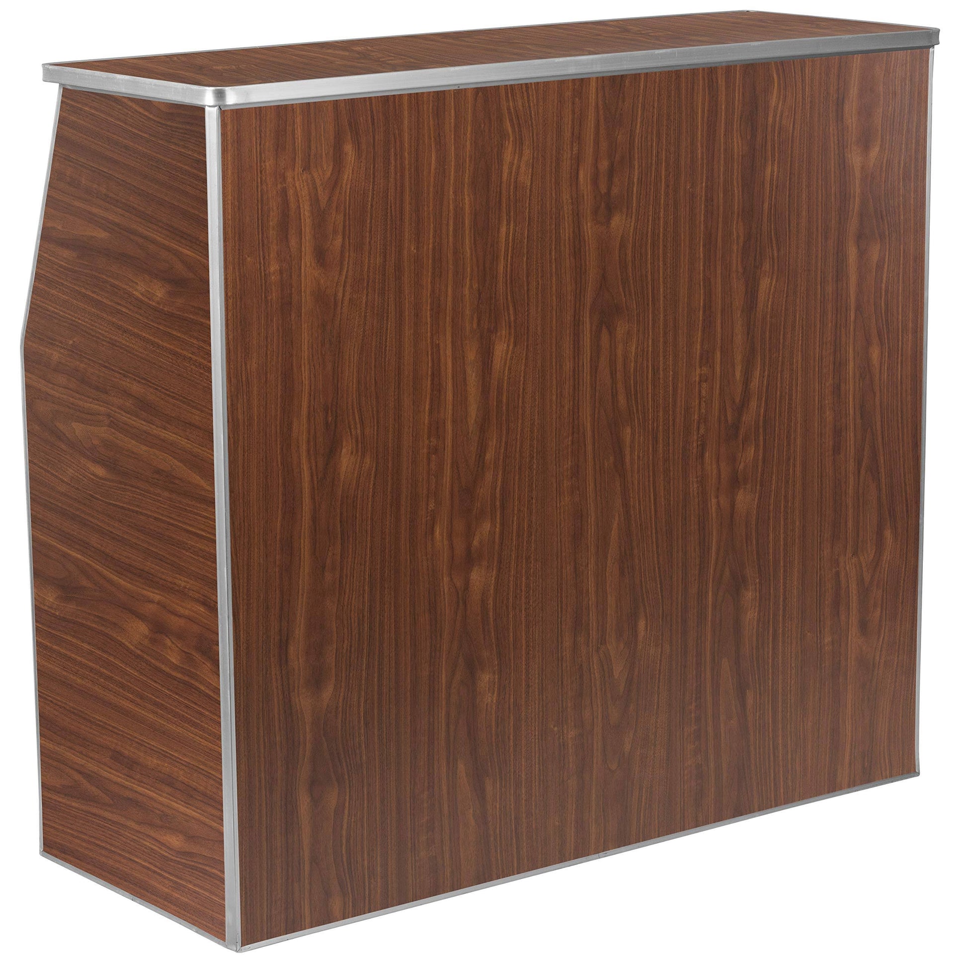 4-foot Laminate Foldable Bar Take the party anywhere with this portable, folding bar table. A portable bar is a must for any traveling event coordinator. With two surfaces, this design provides a space for prep and presentation. Perfect for hotels, conventions, conferences, weddings, outdoor events and in house. They need relatively little storage space when they re not in use. Remove the top, unhinge table and sides fold inward. They come out of storage and convert for use in minutes
