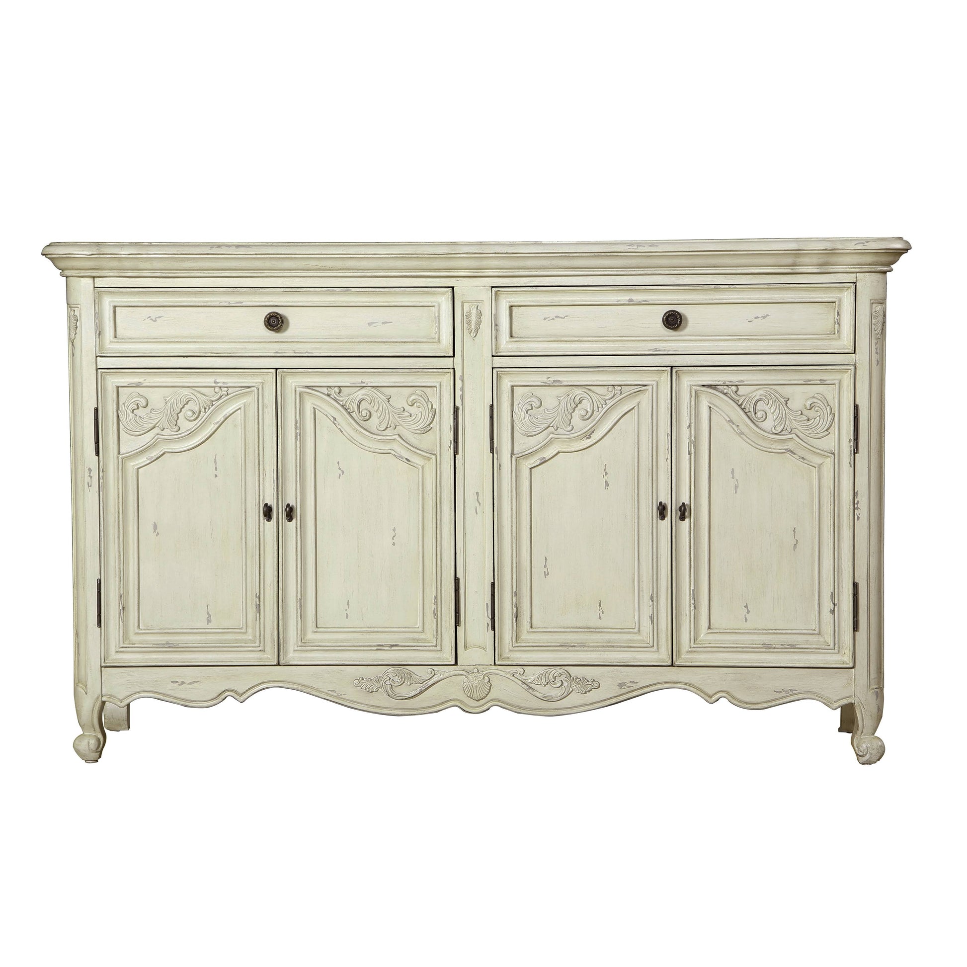 Accentrics Home RH-641052A, Romantic and charming can easily describe this accent chest. The soft, decorative carved accents and trim, framed drawers and doors, and cabriole legs are reminiscent of fine French furniture. Ideal for a hallway or as a small accent credenza, this piece offers two drawers and four doors with two adjustable shelves - beauty and function united.