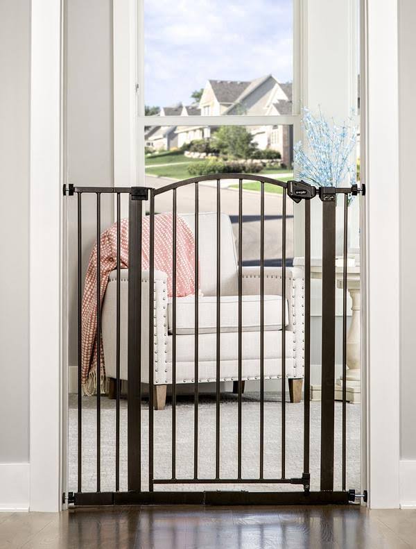The moment your baby becomes mobile or begins climbing, a baby gate becomes an essential tool in your home. With both design and functionality in mind, the Extra Tall Arched Decor Safety Gate is a safe and convenient way to protect both your child and home. Equipped with an all-steel construction, this attractive safety gate is adjustable to accommodate door openings between 29-39.5. If you are worried about your child climbing, the gate is extra tall at 36 high. The extra tall baby gate can be installed via pressure mount with the included rubberized tension knobs or use the included hardware to attach the gate to your wall.