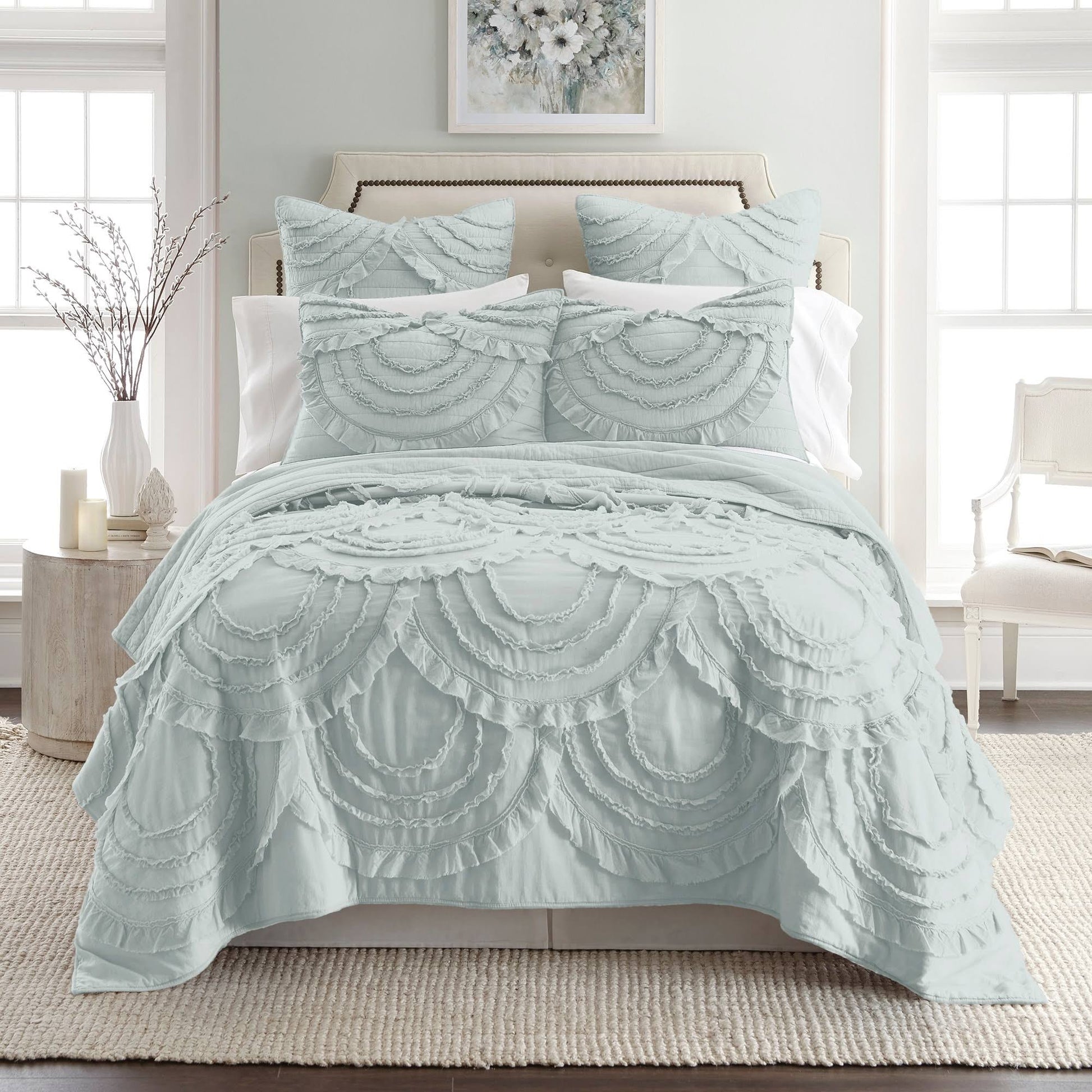 The Allie Spa Reversible Quilt Set by Home is inspired by a colorful spa. This simple fringe design will immediately transform your bedroom. Made with the softest lightweight cotton, this reversible quilt features a light blue fringe, reversing to a light blue stripe on the other. The Quilt Set is machine washable and includes the quilt and matching pillow shams. Enjoy this for years to come!
