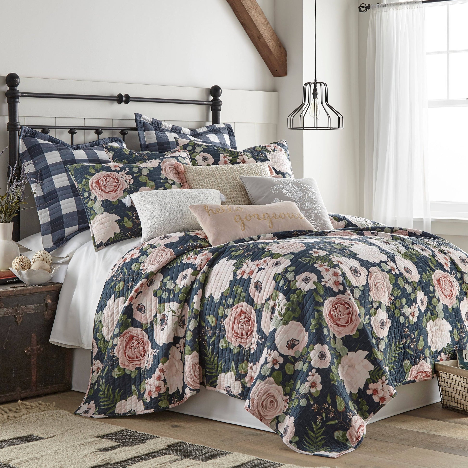 Home Black & Blush Floral Fiori Cotton Quilt Set Twin