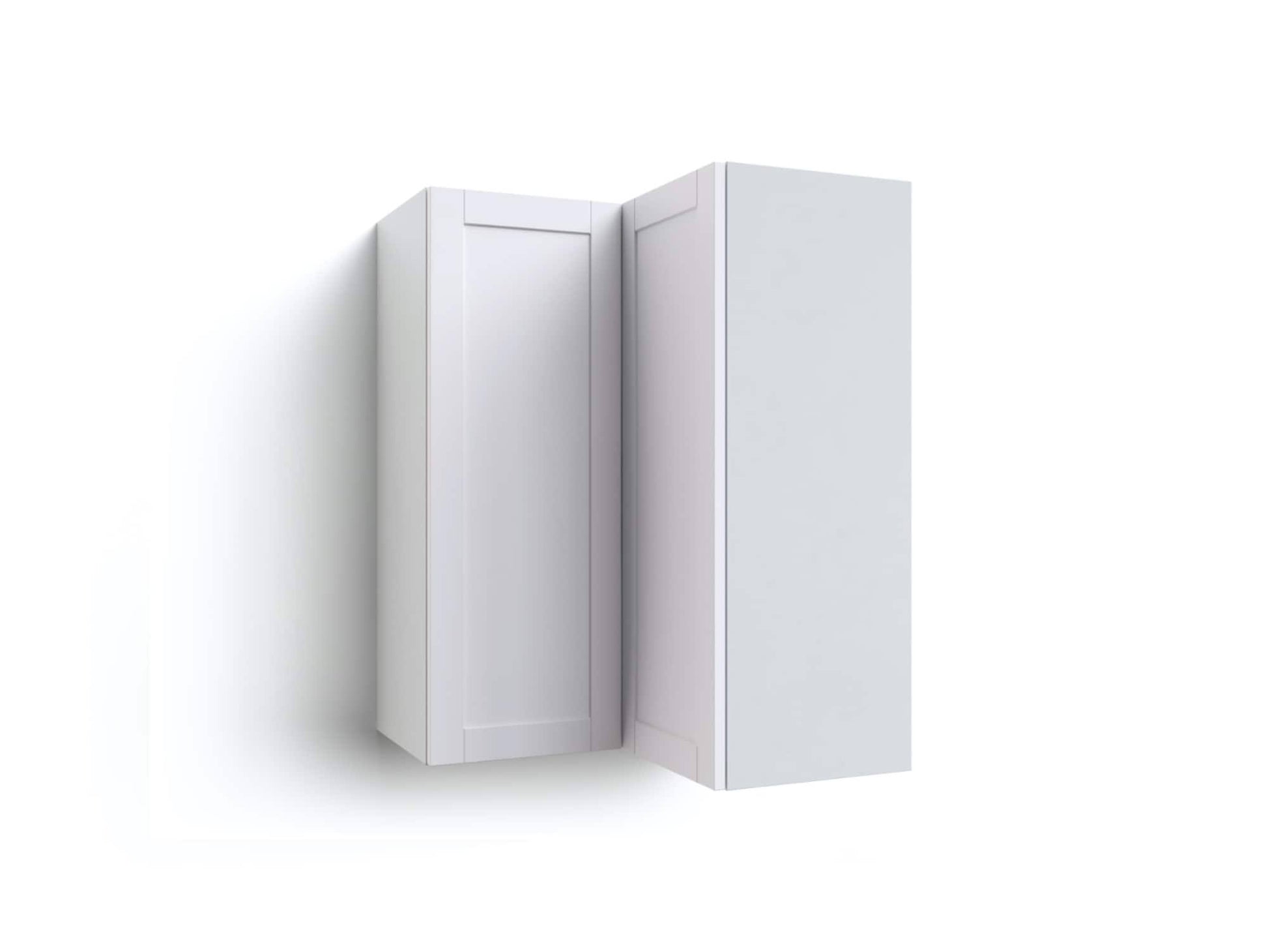 The Home Corner Wall Cabinet allows for maximum efficiency when it comes to kitchen storage. Ensuring that no part of your kitchen goes wasted, this wall cabinet benefits from ample interior space for kitchen equipment and ingredients. The perfect solution for any corner kitchen layout, our corner cabinets connect our standard wall cabinets together to complete your custom kitchen. Like our standard cabinets, these are built with a simple foundation design that allows for customization. Choose from a range of paint colors on our 18.5 mm Lacquer MDF door. There are two adjustable shelves inside, while your choice of handle is the final flourish. The soft-close hinges add to the premium feel and the adjustable wall mounting brackets ensure it is easy to install. Color: White.