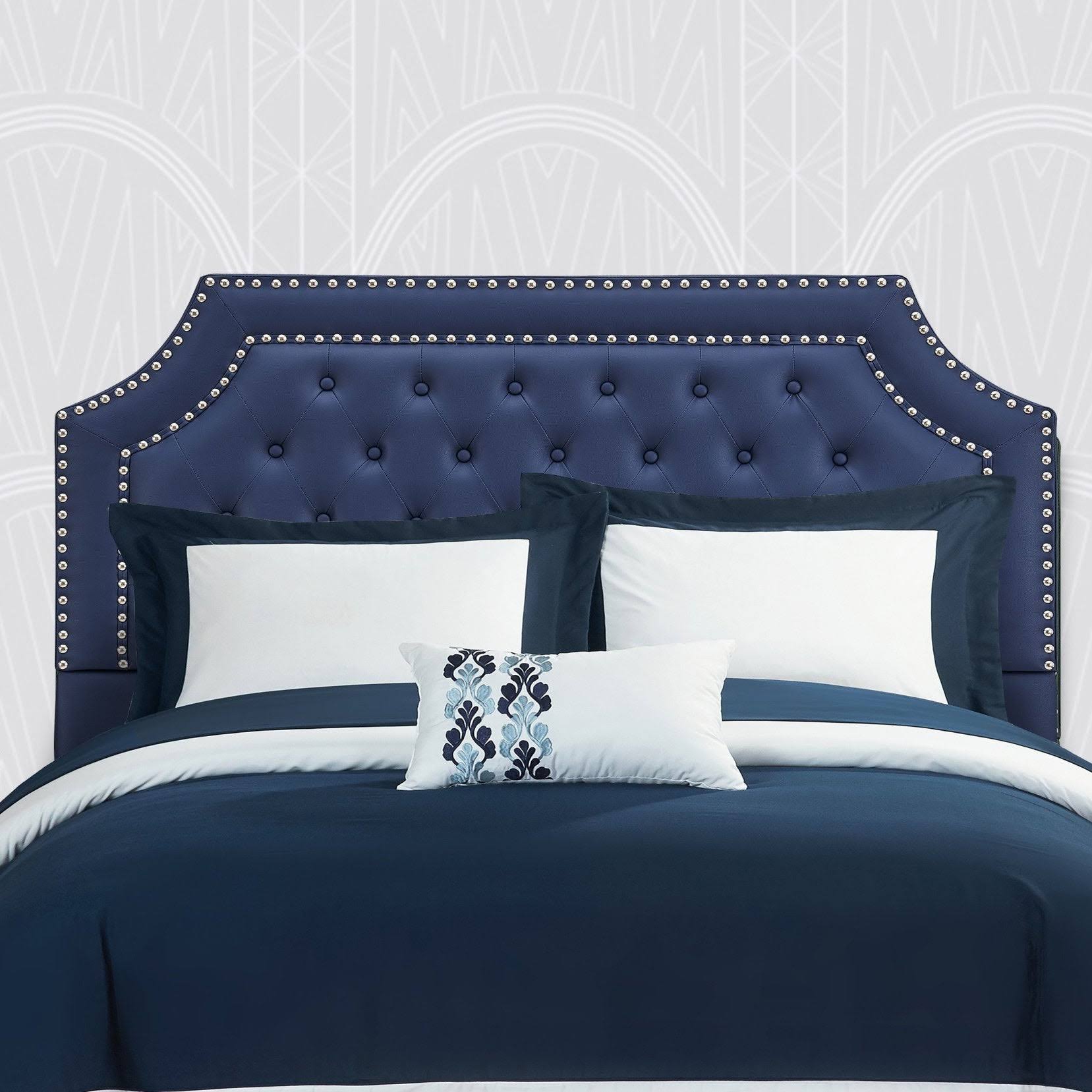 Home Malone Tufted Faux Leather Headboard For Bed Navy Queen