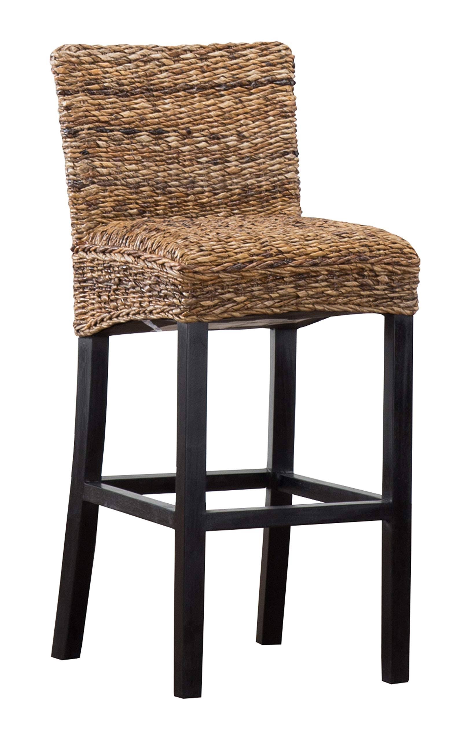 Dimensions: 19W x 22.5D x 41H in. ; Seat height: 30 in.. Seat width: 17.5 in.. Woven abaca seat; solid mahogany legs. Natural brown and black finish. Contemporary style. Crafted entirely by hand. Give your bar area some natural chic appeal with the Kosas Home Portman 30 in. Barstool. The comfortable high-backed seat is hand woven out of abaca, sustainable fibers derived from the banana plant. Because the natural material is left unfinished, no two of the stools are ever completely identical in terms of their color variations. The handcrafted base is constructed out of mahogany wood for durability. A black finish on the wood offsets the brown hues of the seat for added visual appeal. Color: black/brown/mahogany - PL11843.
