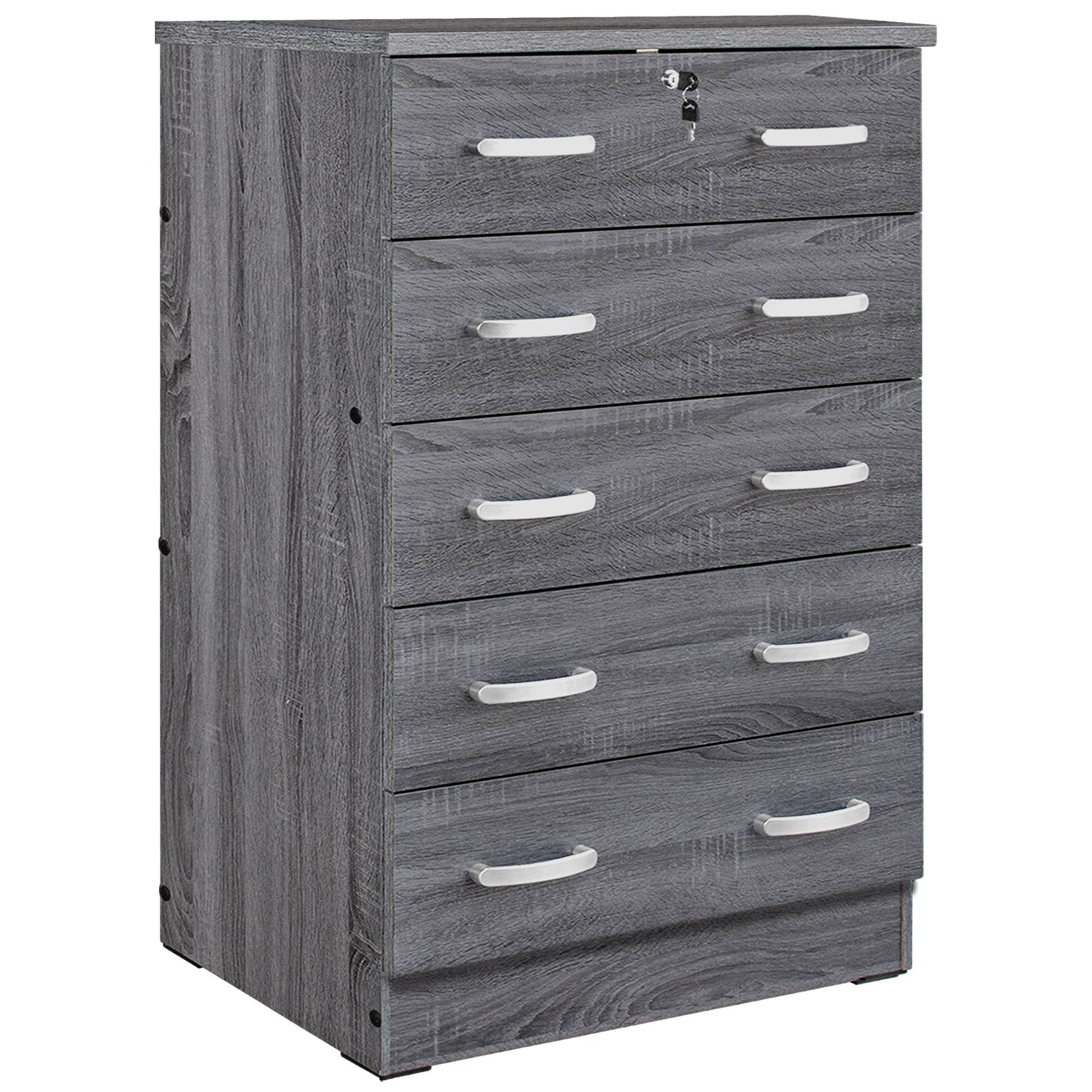 Home Products Cindy 5 Drawer Chest Wooden Dresser With Lock In Gray