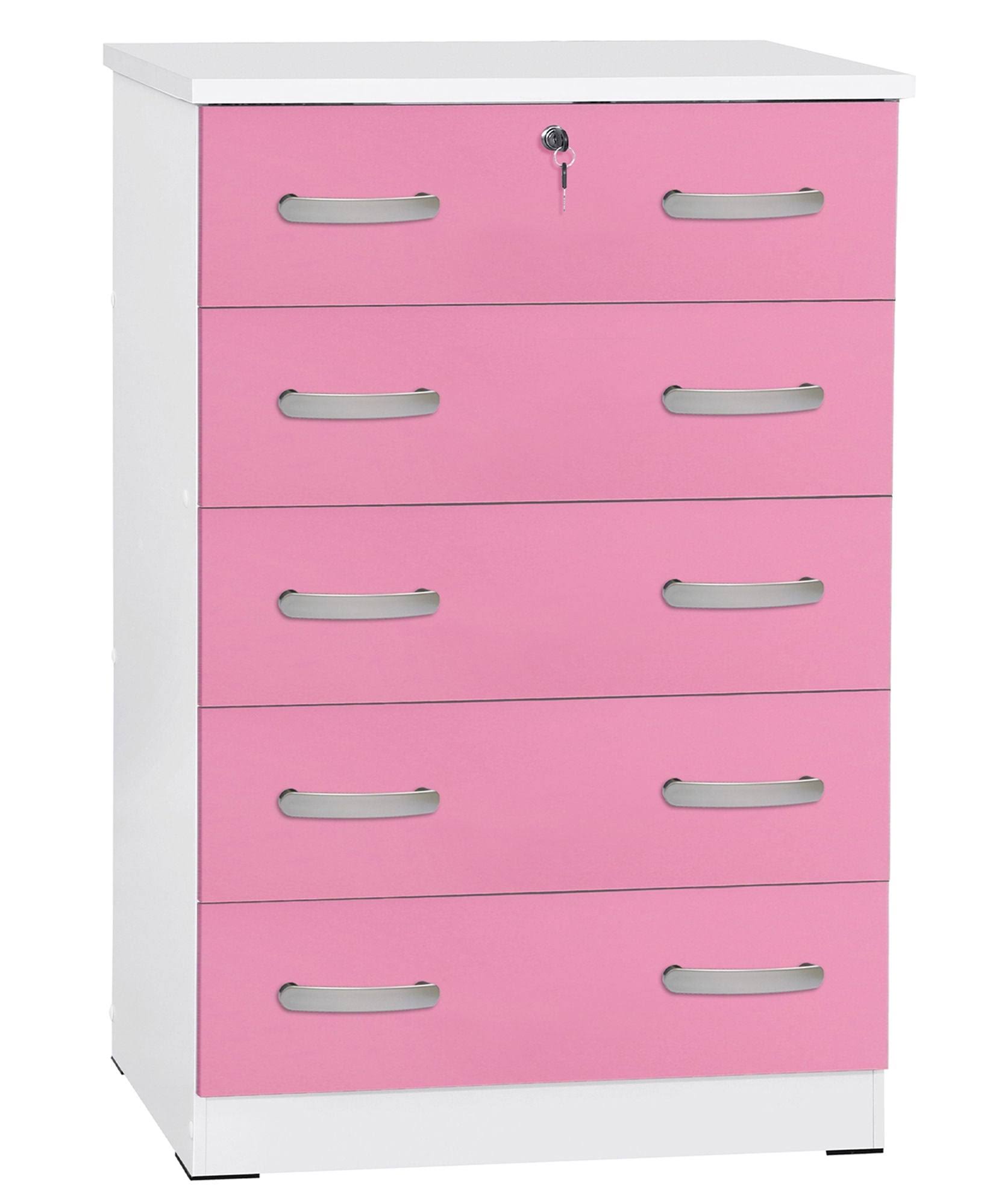 Home Products Cindy 5 Drawer Chest Wooden Dresser With Lock In Pink
