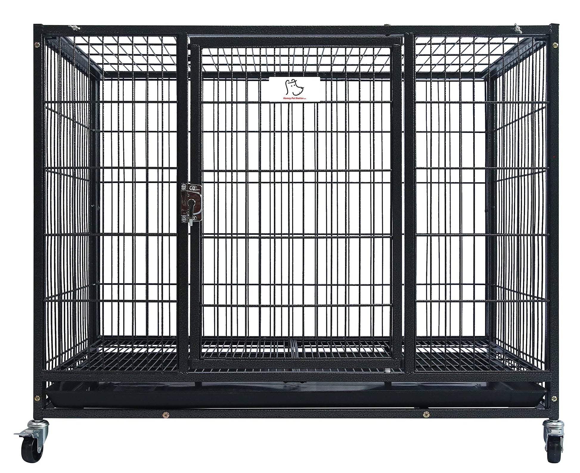 Homey Pet New 37Open Top Heavy Duty Dog Pet Cage Kennel w/Tray Floor Grid and Casters Brand Homey Pet Color Black Hammer Spray Material Steel Number of Levels 1 Target Species Dog Open top makes it easier to put your dog/animal in and out Lockable casters provide more convenience to move the cage. Floor grid keeps your pet clean and dry All metal heavy duty design with safety auto lock design; Nontoxic finished surface Ultra strong pull out tray for easy cleaning. Tray can also fit inside the cage for better protection on pet s feet