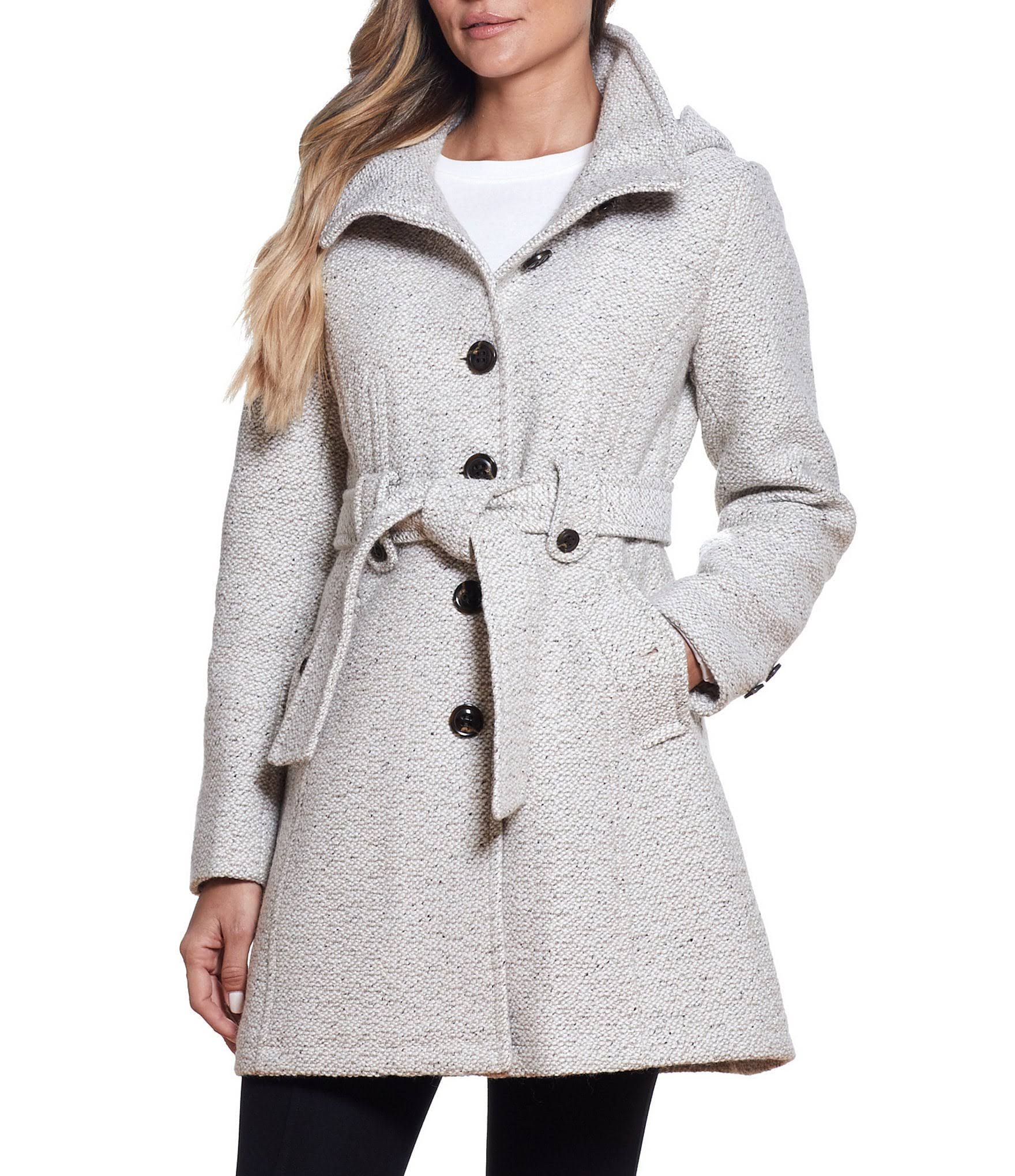 From , this coat features:Textured fabrication - Single breasted silhouette Set in, detachable hooded wing collar - Long sleeves - Side entry pockets - Removable self-belt with belt loopsHeavyweightLinedStraight hemline - Button front closure - Approx. 34center back lengthWool/polyester/acrylic/rayonDry clean - Imported. Mid,S,Single Breasted,Tan,Wool Blend, Color: Oatmeal, Material: Blend, Pattern: Multi
