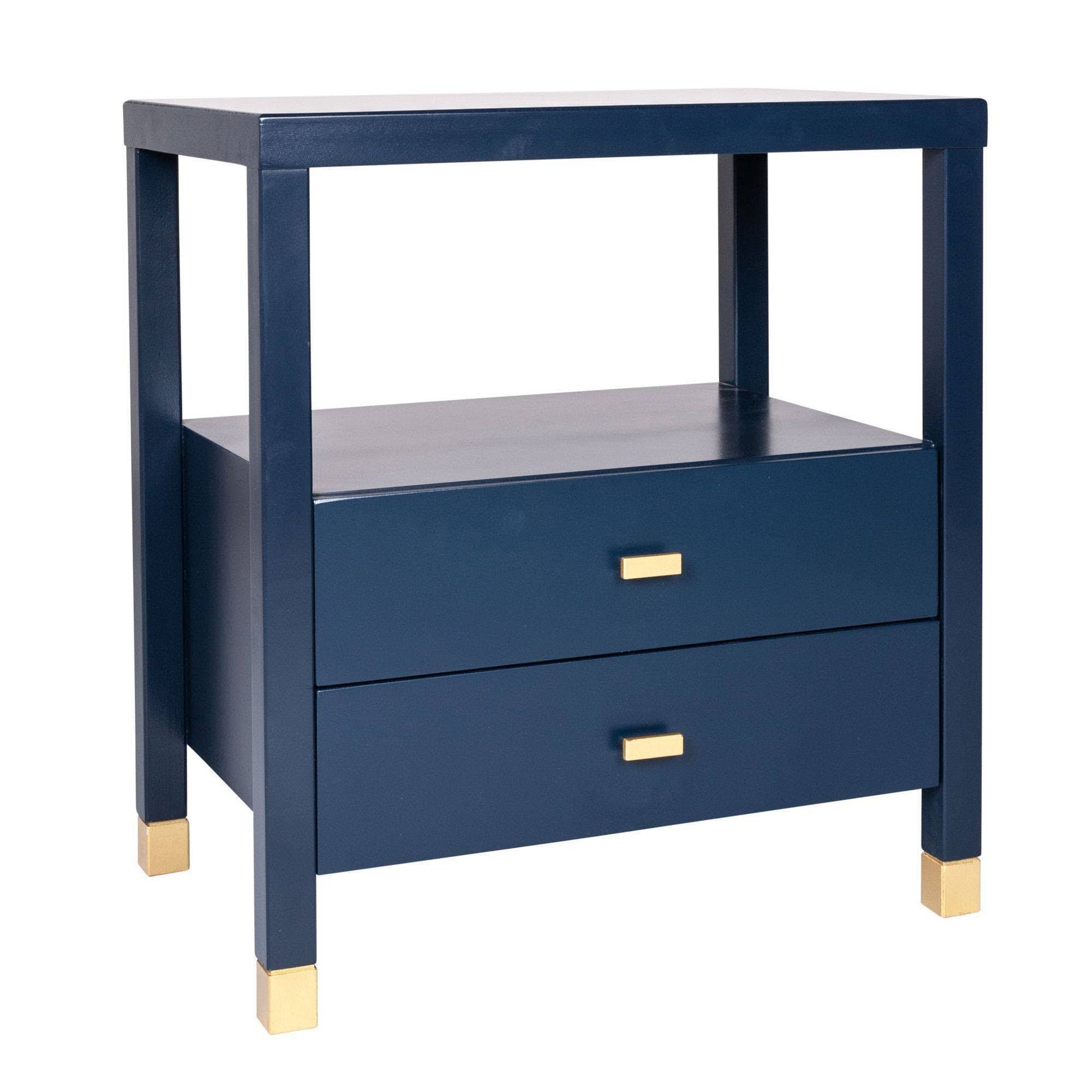 Elevate your bedroom with this stylish and functional nightstand. Designed for those who appreciate minimalist aesthetics, its compact size makes it ideal for small spaces. The elegant brass drawer pulls provide a beautiful contrast to the piece s tones, ensuring it complements any color scheme effortlessly. Equipped with two spacious drawers and an open shelf, this nightstand offers ample storage for all your bedtime essentials, from lotions to eye masks. It s also the perfect spot to place a reading lamp and the stack of books you ve been eager to dive into. Pair this sleek silhouette with a platform bed and a lush fiddle leaf fig plant to create a modern and chic sleeping space that exudes both style and functionality. Upgrade your bedroom decor with this versatile nightstand today!