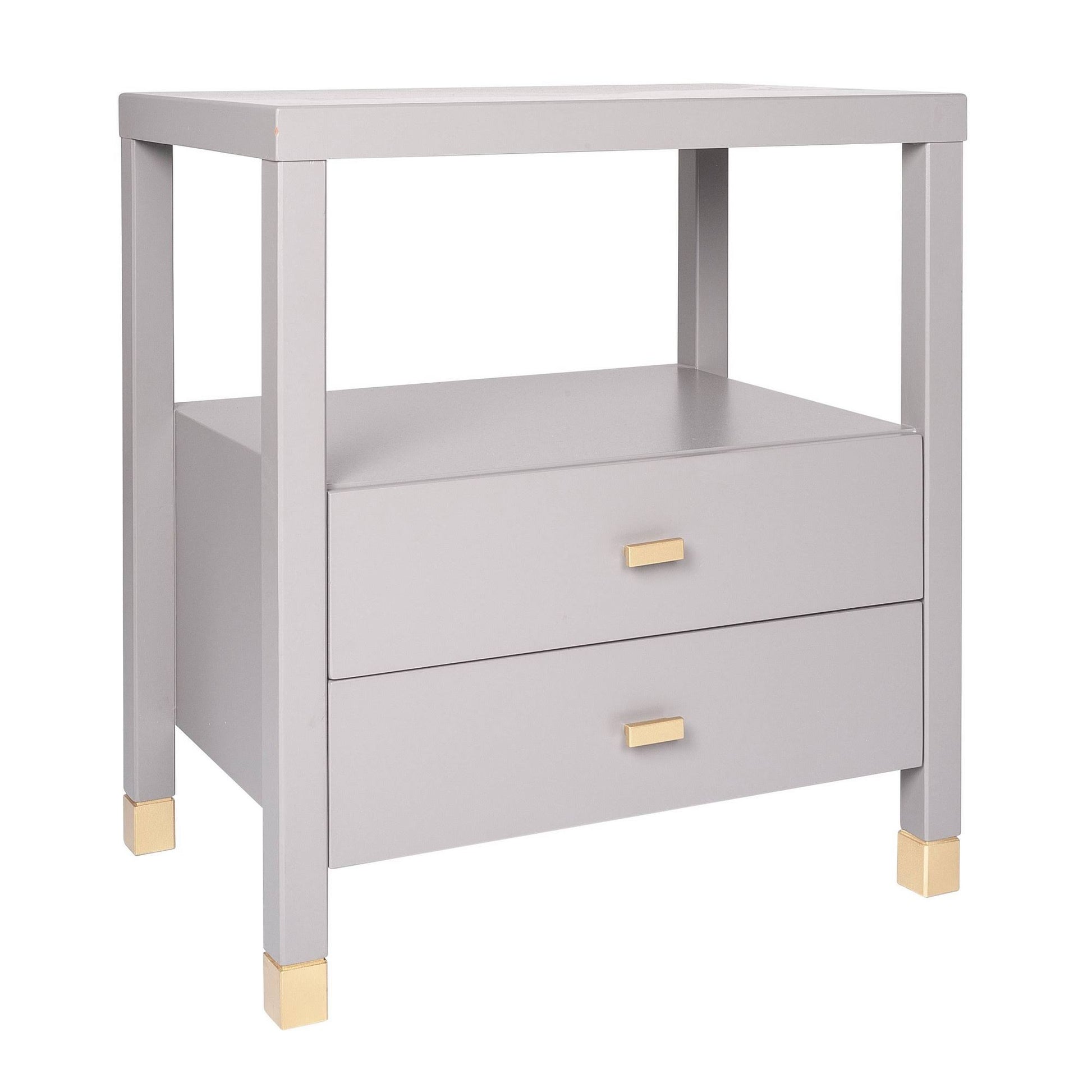 Fashion and function collide with this nightstand. Ideal for the aspiring minimalist, the small footprint means it s perfect for small spaces. Brass drawer pulls contrast with the tones of this piece helping it blend into any color scheme. With two spacious drawers and an open shelf, there is plenty of room for all your before-bed necessities - from lotion to eye masks. It s the perfect piece to hold a reading lamp and the stack of books you ve been meaning to read! Pair this sleek silhouette with a platform bed and a fiddle leaf fig for a modern sleeping space!