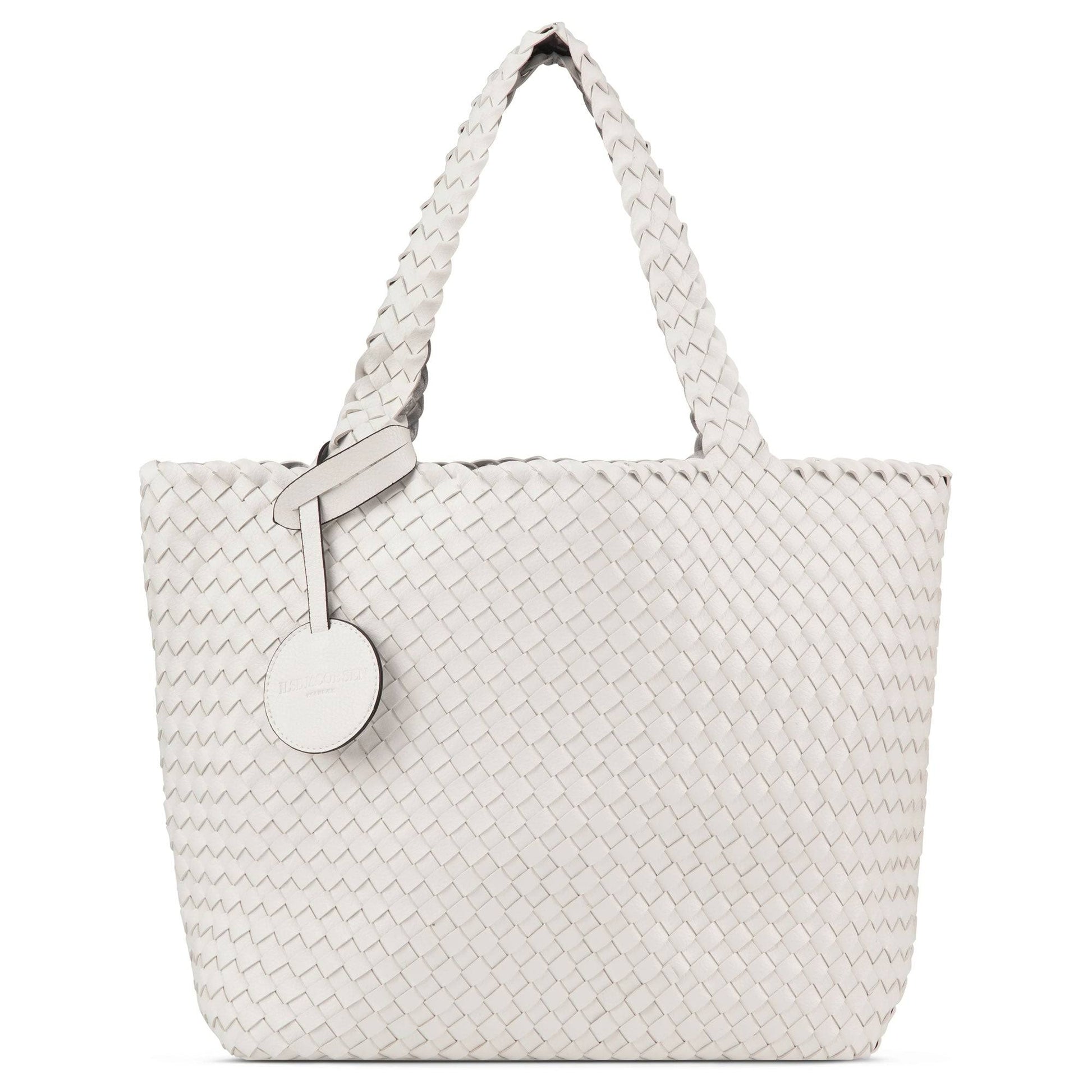 This fashionable woven tote is functional and makes travel look easy. Double-face; 100% Polyurethane/vegan leather; Style #: 100710;