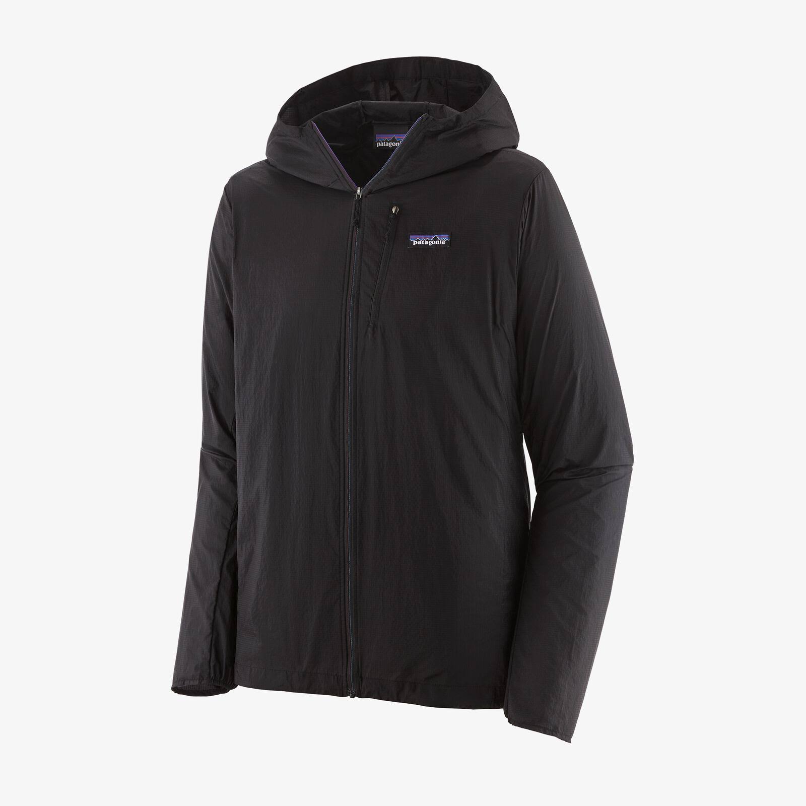 Ultra-lightweight and weather resistant the Men s Houdini Jacket offers simple protection and a high level of breathability that caters to trail runners climbers mountain bikers and ounce-counting backpackers alike. Weighing only 3.7 ounces and packing down to the size of a tennis ball this jacket can be taken anywhere and easily fits into any pack or pannier. Made from highly wind-resistant and almost weightless 100% recycled nylon ripstop fabric with a DWR (durable water repellent) finish to help protect you from damp weather the jacket has a low-profile design that won t inhibit movement on the trail. The hood can be adjusted with one hand and won t interfere with your peripheral vision. Partial elastic cuffs and an elasticized and drawcord-adjusted hem further enhance fit. A single zippered chest pocket stows a key or energy gels. When the wind and drizzle clear up the jacket stuffs into the pocket and an integrated carabiner loop lets you quickly secure it to a pack or belt. Reflective logos help improve night time visibility. Available in your choice of size and color options the Men s Houdini Jacket has a close-fitting slim fit.