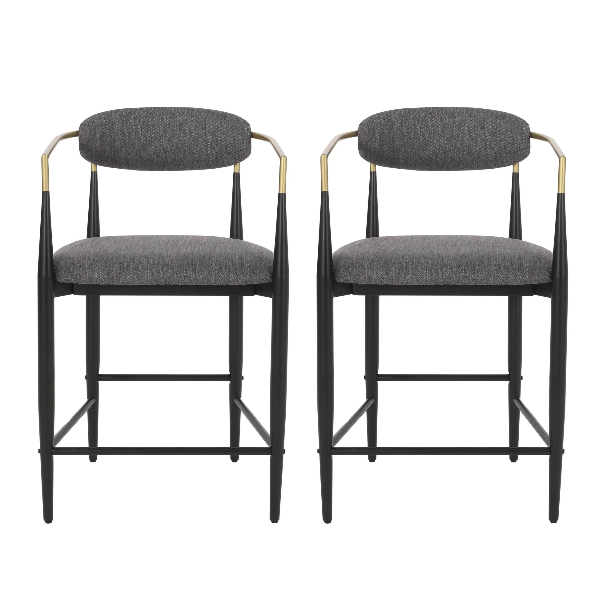 Take your interior decor up to the next level. Featuring smooth upholstery and sleek black frames with stunning gold accents, our striking set of two counter stools offer a chic modern look to any home. The frames are crafted from durable iron and feature an exquisite toothpick design, perfectly complementing the open backrests. Our counter stools give you and your guests a stylish and sturdy place to dine effortlessly at your kitchen nook or to enjoy a few cocktails with your friends. Color: Charcoal and Black.