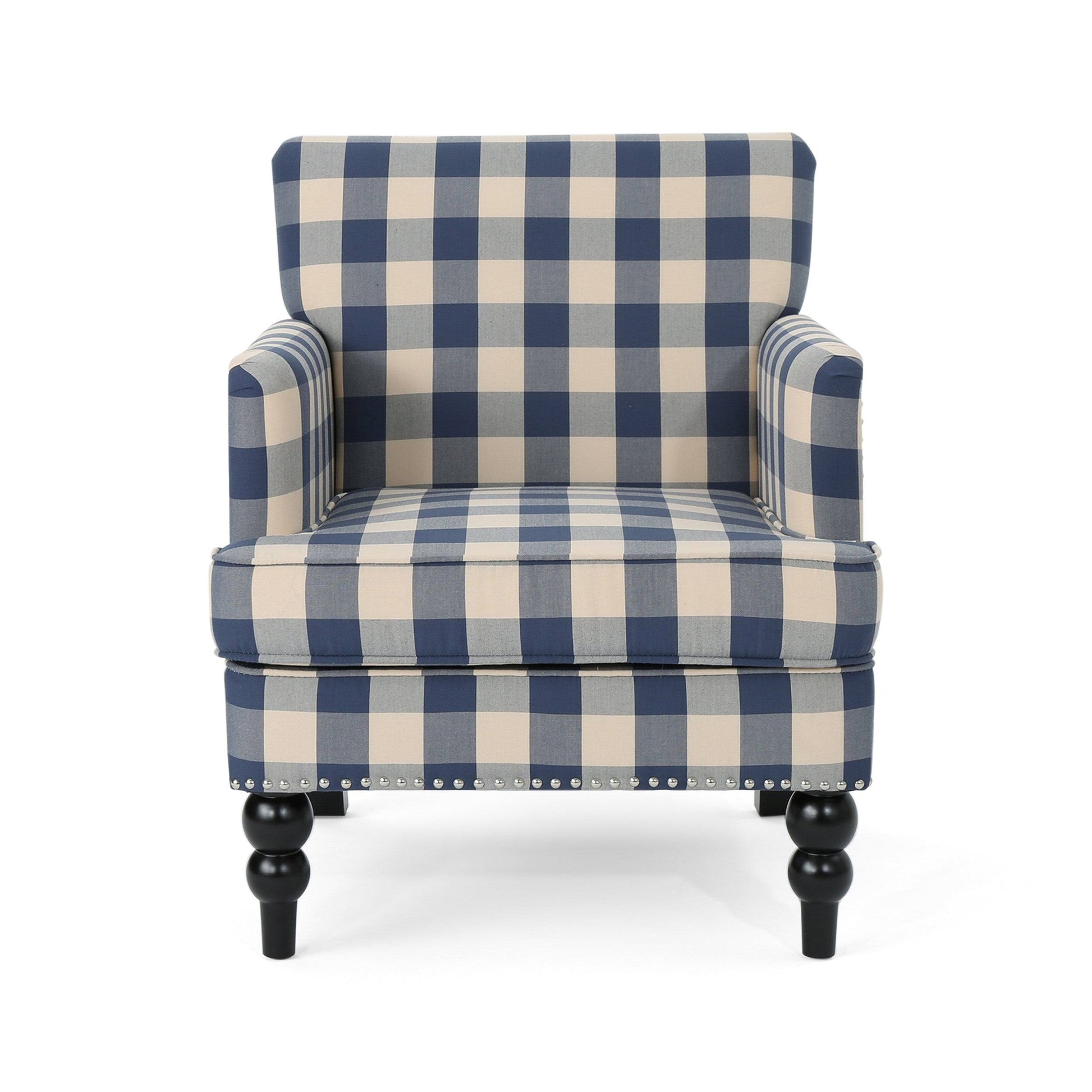 House Harrison Club Chair In Blue Checkerboard And Dark Brown