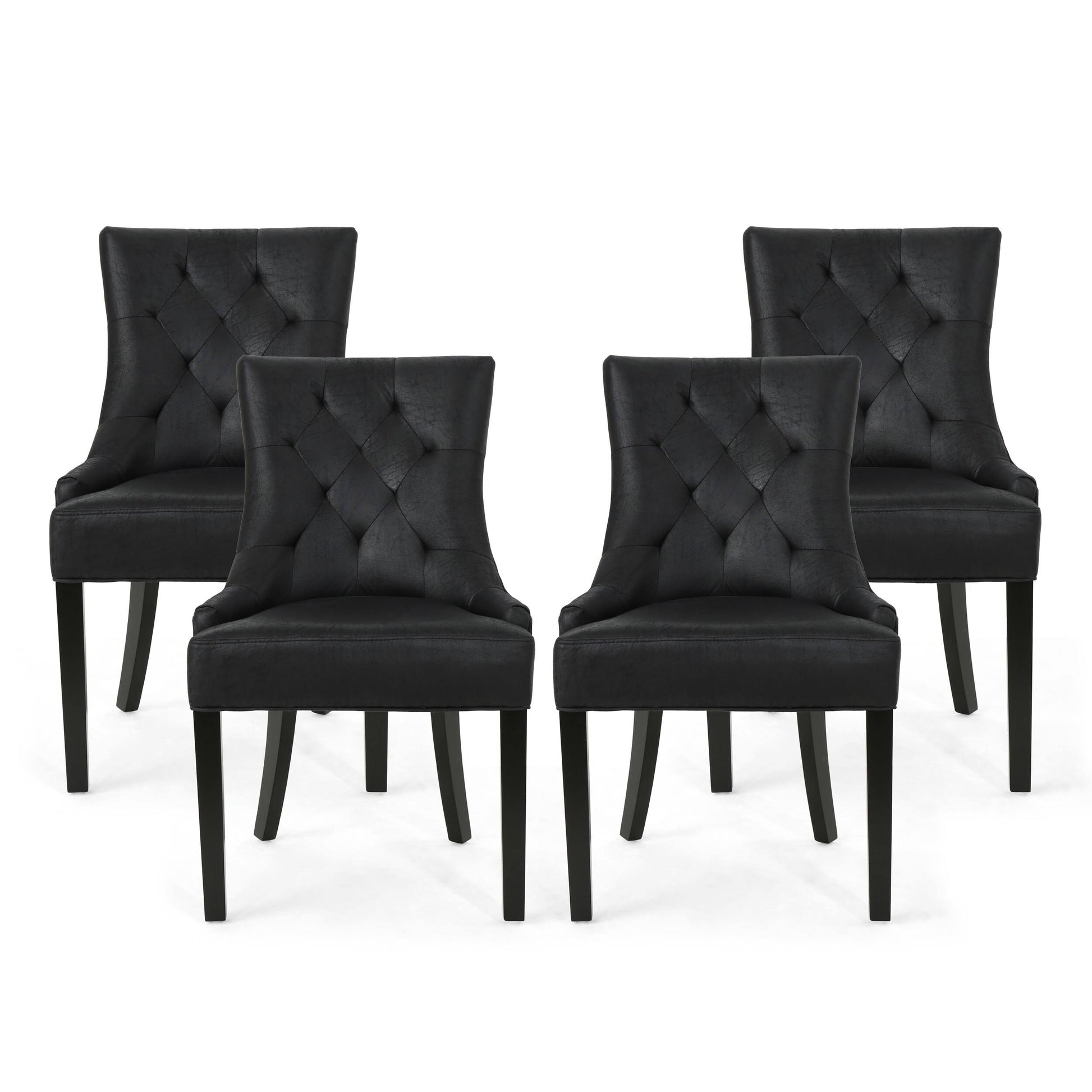 Surround your dining space with a set of chairs that not only brings your decor to life but also contours the body for added comfort. Featuring lovely diamond stitched tufting, plush upholstered seating, and a sturdy wooden frame for outstanding durability, this chair uses a mix of materials to emphasize the overall contemporary style of the piece. Our refined dining chair set is finished with gracefully sloped armrests and a complementing leg finish, making this the perfect balance of stunning style and convenient functionality. Color: Light Sky.