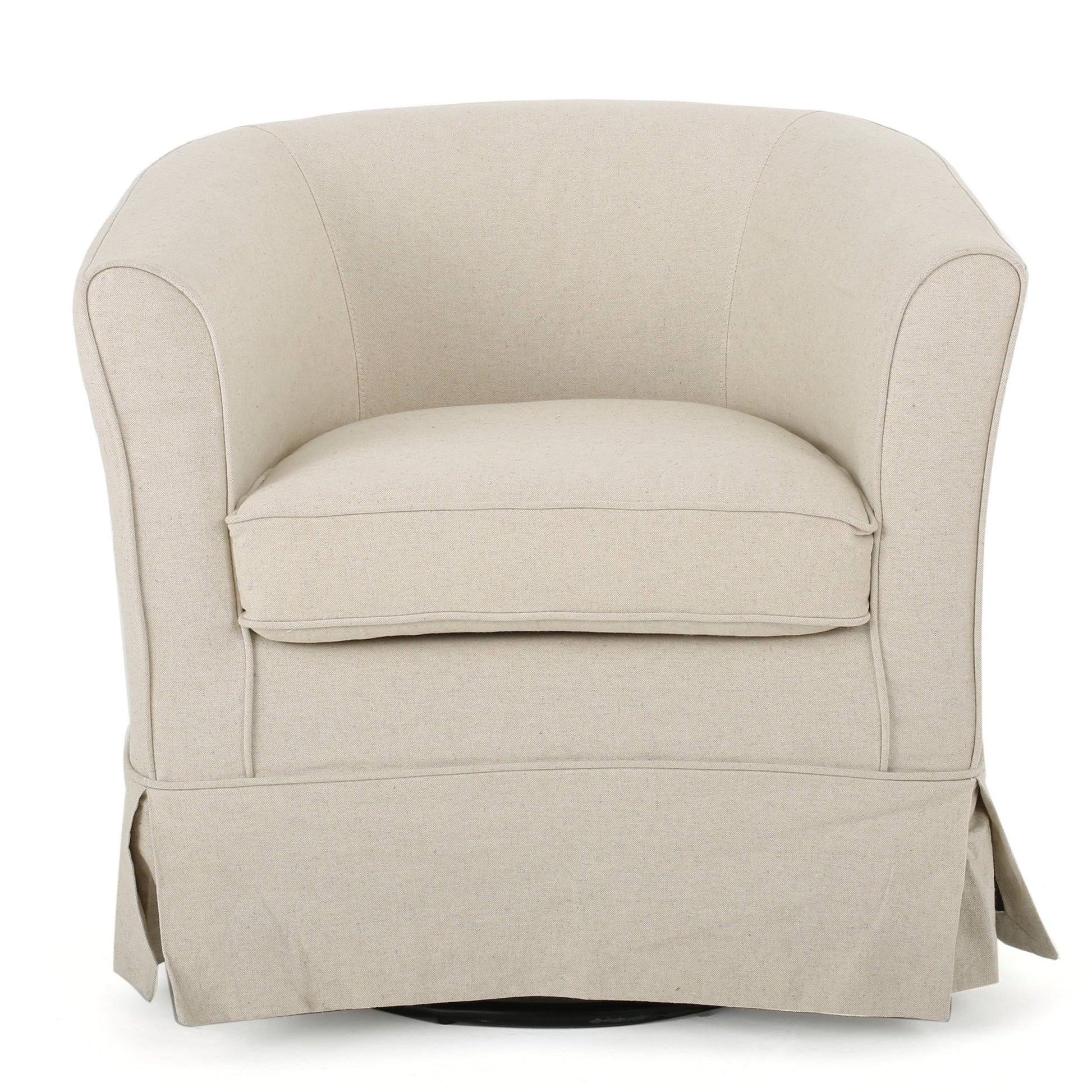 Enjoy this Noble House Morrill Swivel Chair in any room of your home. This chair is upholstered in soft fabric which adds to the overall comfort of the chair. The swivel feature allows you to always be facing the conversation. Enjoy watching a movie while still being able to turn around without getting up. This chair is ideal to curl up in and read your favorite book. Fabric Upholstery Soft fabric adds to the comfort and look of the chair. Swivel Chair With the swivel function you will always be facing the conversation. Iron Base The iron base provides a stable seat. Assembly Required Light assembly required, tools provided.