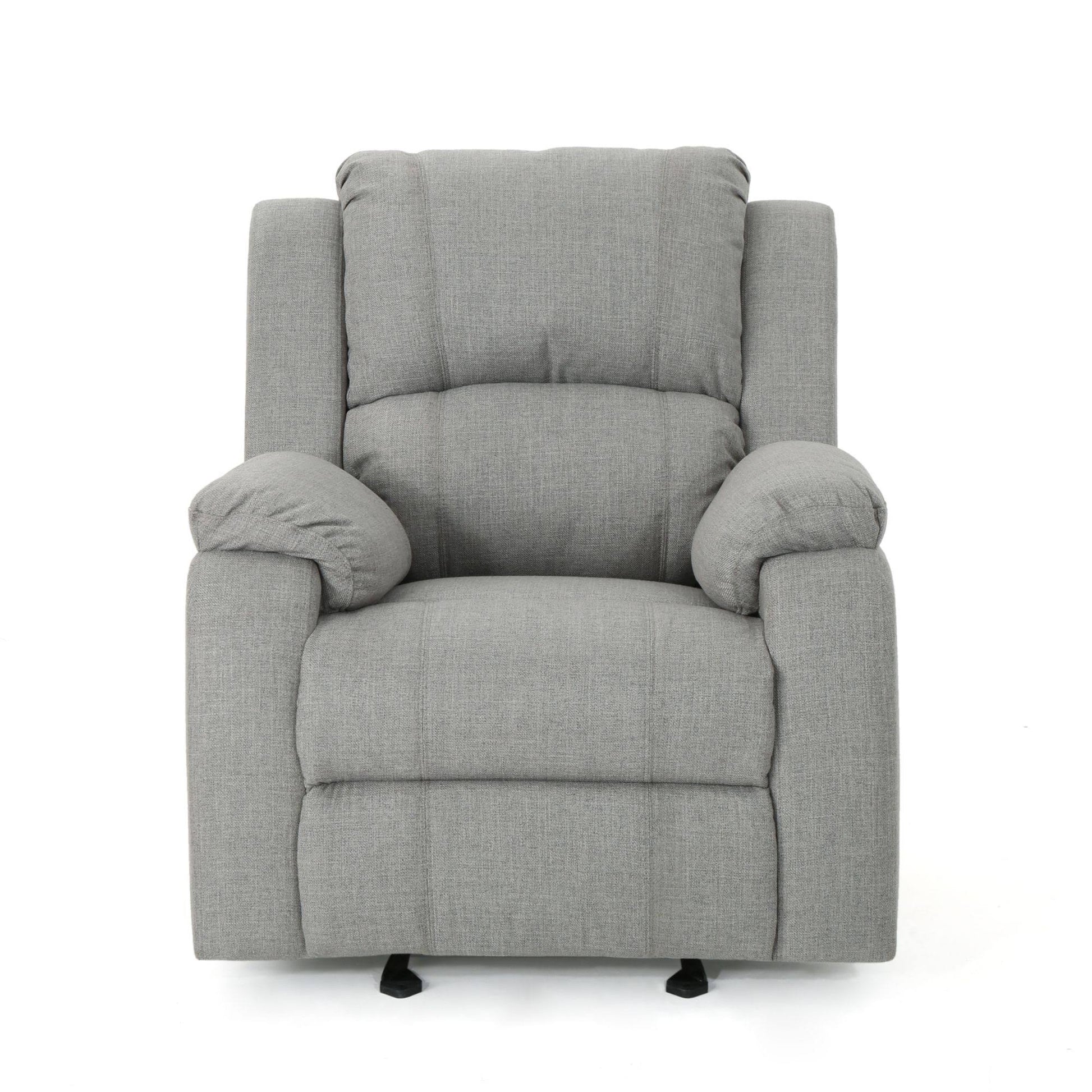 This easy-to-recline extra cushioned gliding recliner provides an incredibly high degree of comfort in an attractive package. It features a plush, lightly tufted backrest paired perfectly with an easy-to-release lever, allowing for high comfort with little effort. This recliner is sure to be the talk of the family with everyone vying for a turn relaxing on it. Color: Grey.