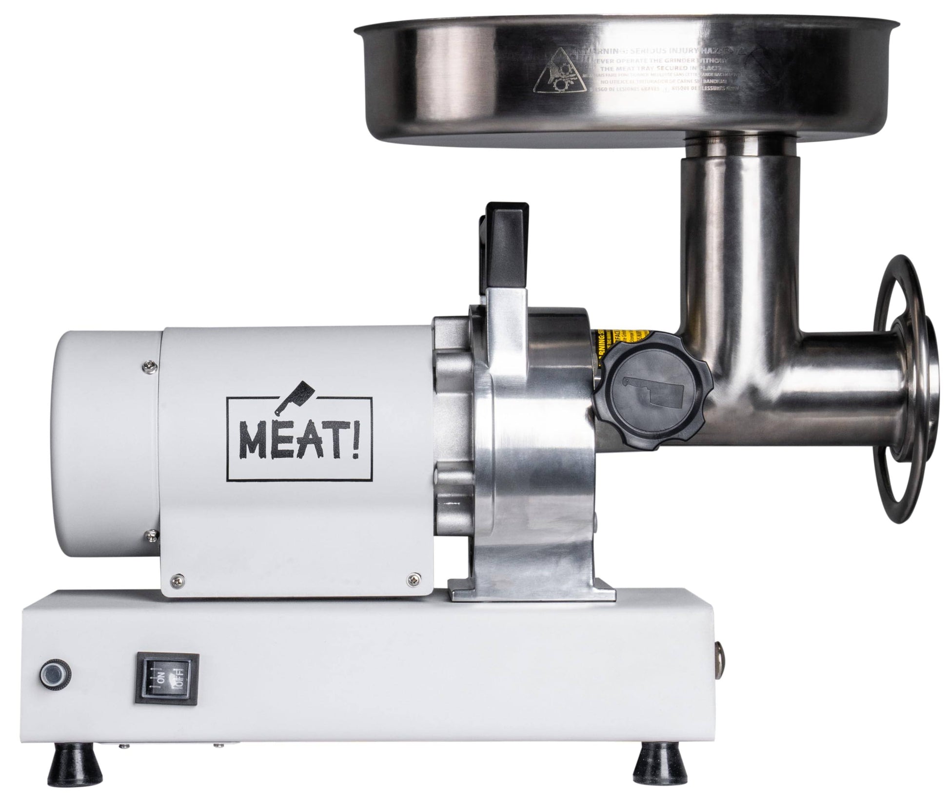 DIMENSIONS: 18.30 inches L x 15 inches W x 18.80 inches H and weighs 49.70 pounds EASE OF USE: The quick and hassle-free disassembly feature enables effortless cleaning VERSATILE: Comes with 3 different sized grinding plates and flange for stuffing funnel attachment allowing you to customize you grind to you personal preference CONVENIENT: .75 HP motor can generate 7 to 10 pounds of ground meat per minute INCLUDES: 4.5mm grinding plate, 10mm grinding plate, stuffing plate, 1/2 inch stuffing tube, 3/4 inch stuffing tube, 1 1/4 inch stuffing tube, hopper tray, and a meat stomper COMPATIBLE: This grinder is compatible with the MEAT! Foot Pedal Switch It s a MEAT! powerhouse built to easily handle all the deer, elk, caribou, hog, and whatever you care to feed it. Driven by an industrial-strength .75 HP motor that cranks out 7 to 10 lbs of ground meat per minute. This grinder comes with coarse and fine stainless steel grinding plates and a stainless steel stuffing plate with three tubes for stuffing sausage, plus an accessory tray for easy organization.