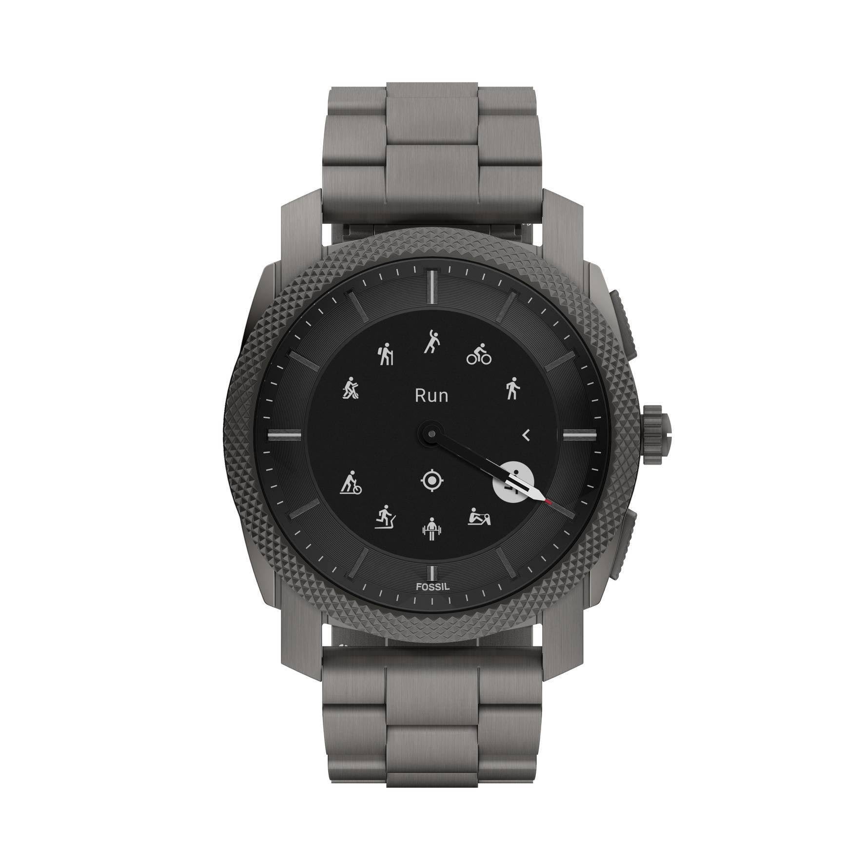 This 45mm Machine Gen 6 Hybrid smartwatch gives you 2+ weeks battery life and features a smoke stainless steel bracelet plus an always-on readout display so you can get your heart rate, message previews, weather and more at a glance. The Smartwatches App is provided by Group, Inc. so your data will be stored in the USA. See the Smartwatches App Privacy Policy and Terms of Use for more (accessible below at Customer Care). Battery life is dependent on usage. smartwatches work with phones running the latest version of Android or iOS. Supported features may vary between countries with compatibility subject to change.