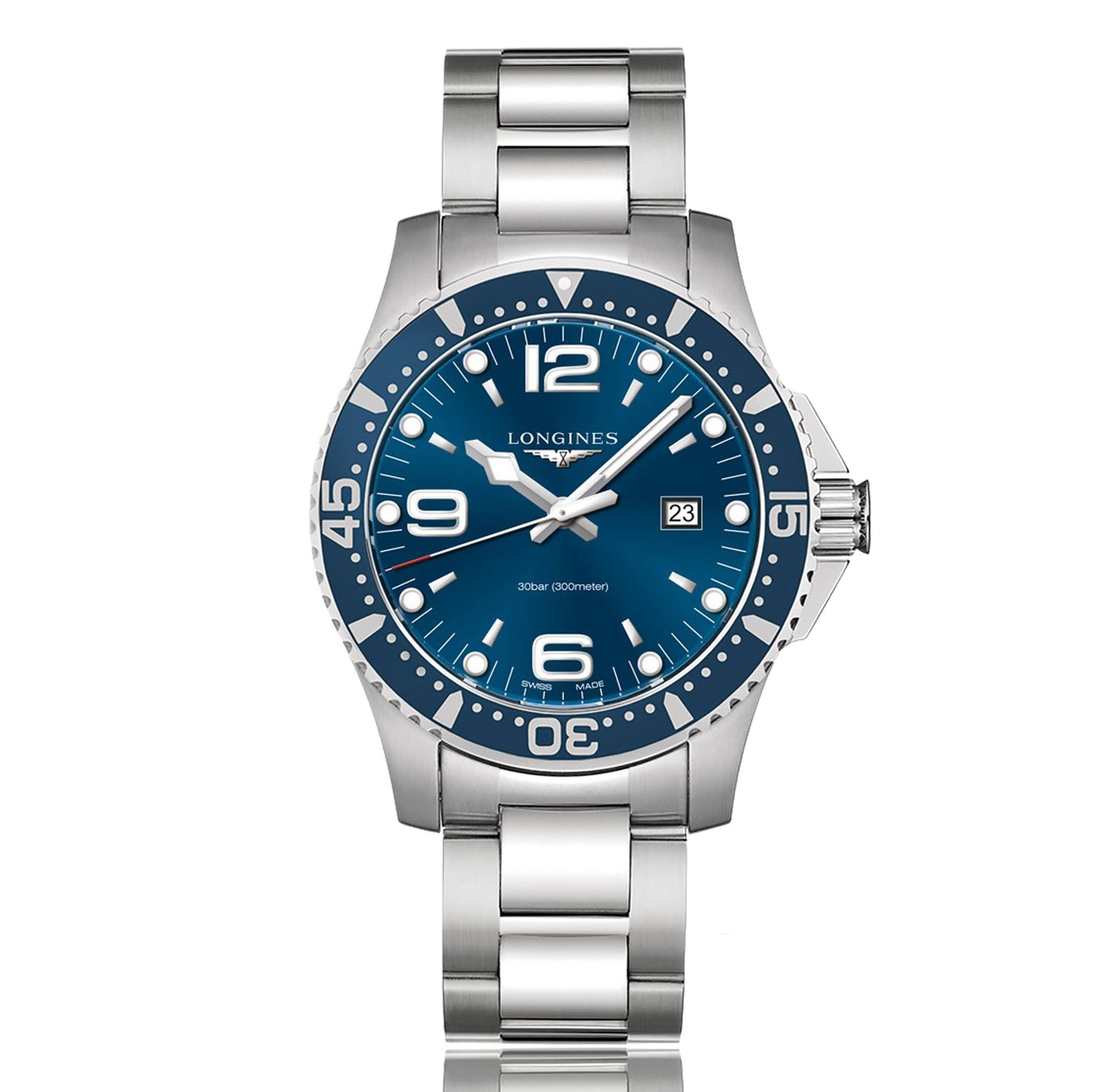 The beautiful L38404566 watch features a stainless steel 44mm case, with a uni-directional rotating bezel, and a black dial covered by a scratch resistant sapphire crystal. The stylish wristwatch is equipped with an exclusive 22mm stainless steel which combines comfort and sturdiness. This horological trendy device has date, hour, minute, second functions. At the heart of this timepiece is Calibre L157. The Quartz movement keeps the hands revolving smoothly and accurately for precise, reliable timekeeping. It contains 6 Jewels, and picks up all the advantages of this high-performance engine. This magnificent watch has a water resistance of up to 1000 feet/300 meters, suitable for scuba diving at depths. This elegant Swiss-made masterpiece is sure to complete any man s collection.