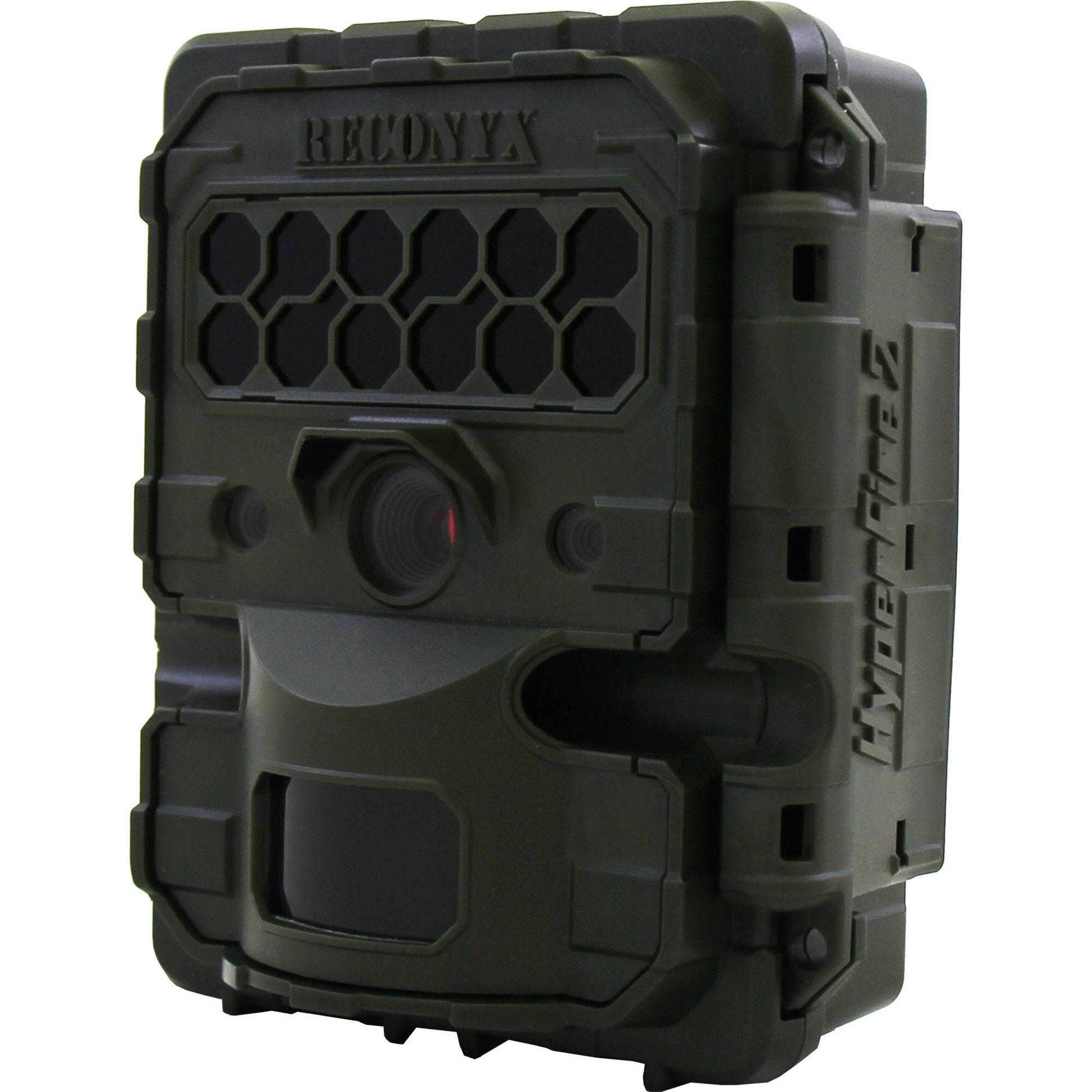 With its fast 1/4-second trigger speed and no-glow flash with a 150 range, the Reconyx HF2X Hyperfire 2 Trail Camera will make sure you see what (or who) is on the move in the woods. The camera shoots motion-triggered or timelapse 3MP still photos at up to two frames per second, and 720p video with sound. Using NiMH or li-ion batteries gives this camera a remarkably wide operating temperature range of -20°-120°F. The Hyperfire 2 is made in the USA with no moving parts, in order to increase reliability and allow for totally silent operation in the field. It records images onto SD/SDHC memory cards up to 512GB in capacity. The camera runs on 12 user-supplied AA NiMH or lithium batteries, which are easy to find and replace. As an added bonus, it includes BuckView Advanced mapping and image management software for Windows. The weatherproof, olive drab green housing is compatible with a padlock and a Masterlock Python cable lock for security.