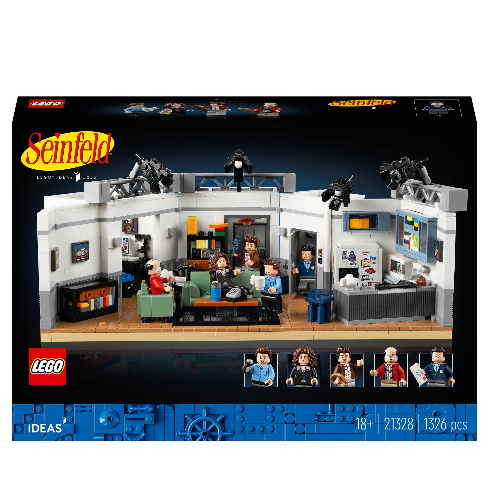 Relive hilarious scenes about nothing from beloved 1990s TV sitcom Seinfeld with this cool model. Build a detailed recreation of Jerry s Manhattan apartment where he and his friends Elaine, Kramer and George hung out (and Jerry s nemesis Newman was an unwelcome visitor). Add a stand-up comedy stage and accessories to spark memories of classic episodes, from The Muffin Tops to The Statue . Cool display model of Jerry s apartment in the classic sitcom Seinfeld. Includes minifigures of Jerry, George, Kramer, Elaine and Newman. Many instantly recognizable details and accessories to delight fans. Also includes a small, brick-built stand-up comedy stage and a Festivus pole! A delightful display piece for your home or a gift for Seinfeld or fans. You ll want to share photos of this charming, buildable model. Step-by-step instructions allow even beginnersto build confidently. Ideas sets are created by fan designers and voted for by fans. High-quality bricks connect simply and strongly. components are tested to meet stringent global safety standards.
