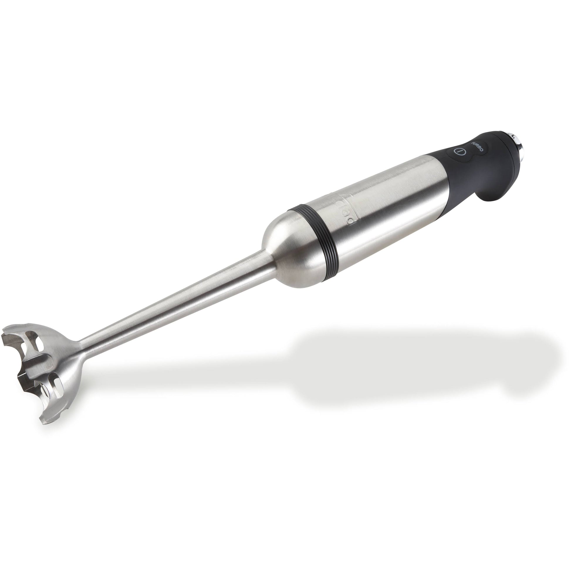 Crafted from durable stainless steel. A powerful motor makes blending quick and easy. Extra-long driveshaft reaches into deep bowls and pots. Features a variable speed dial and turbo buttons. Ideal for small and large batches. Measures: 3L x 3W x 17.25H. Make your own milkshakes, baby food, soup, and sauces with the Immersion Blender. Featuring a powerful motor, variable speed dial, and turbo buttons, you ll have no problem whipping up your favorite homemade foods in small and large quantities alike. Crafted from stainless steel, this immersion blender has an extra-long, drive shaft that easily reaches into deep bowls and pots. The drive shaft is also removable for easy cleaning and storage. Its ergonomic soft-grip handles helps to make sure that your hand doesn t start to ache while you re in the middle of cooking. Designed to make your life a bit easier, this immersion blender will quickly becomes one of your favorite kitchen tools.